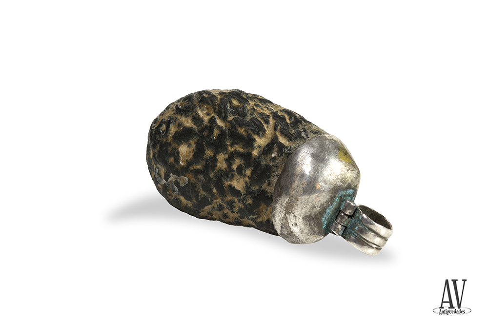 En la tienda Ángeles Viyuela, anticuario situado en el Barrio de Salamanca, estamos especializados en la compra y venta de artes decorativas antiguas de pequeño y mediano tamaño en diversos materiales, como por ejemplo: bronces vieneses, esculturas, cerámica, porcelana, y mucho más. Este amuleto «Meteorito» es una de nuestras piezas más intrigantes, ideal para los coleccionistas que buscan un objeto único que combine historia y un toque de misterio.