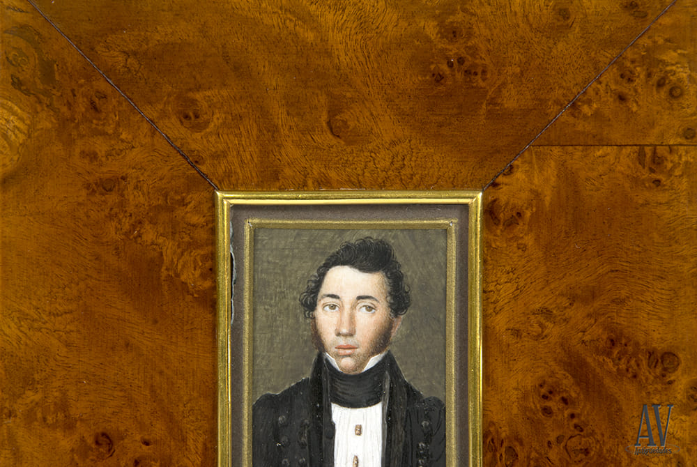Los retratos de caballeros con más escasos y por lo tanto buscados por los coleccionistas. Este concretamente responde estéticamente a los modelos de retrato masculinos de la época Imperio hacia 1815, Español.